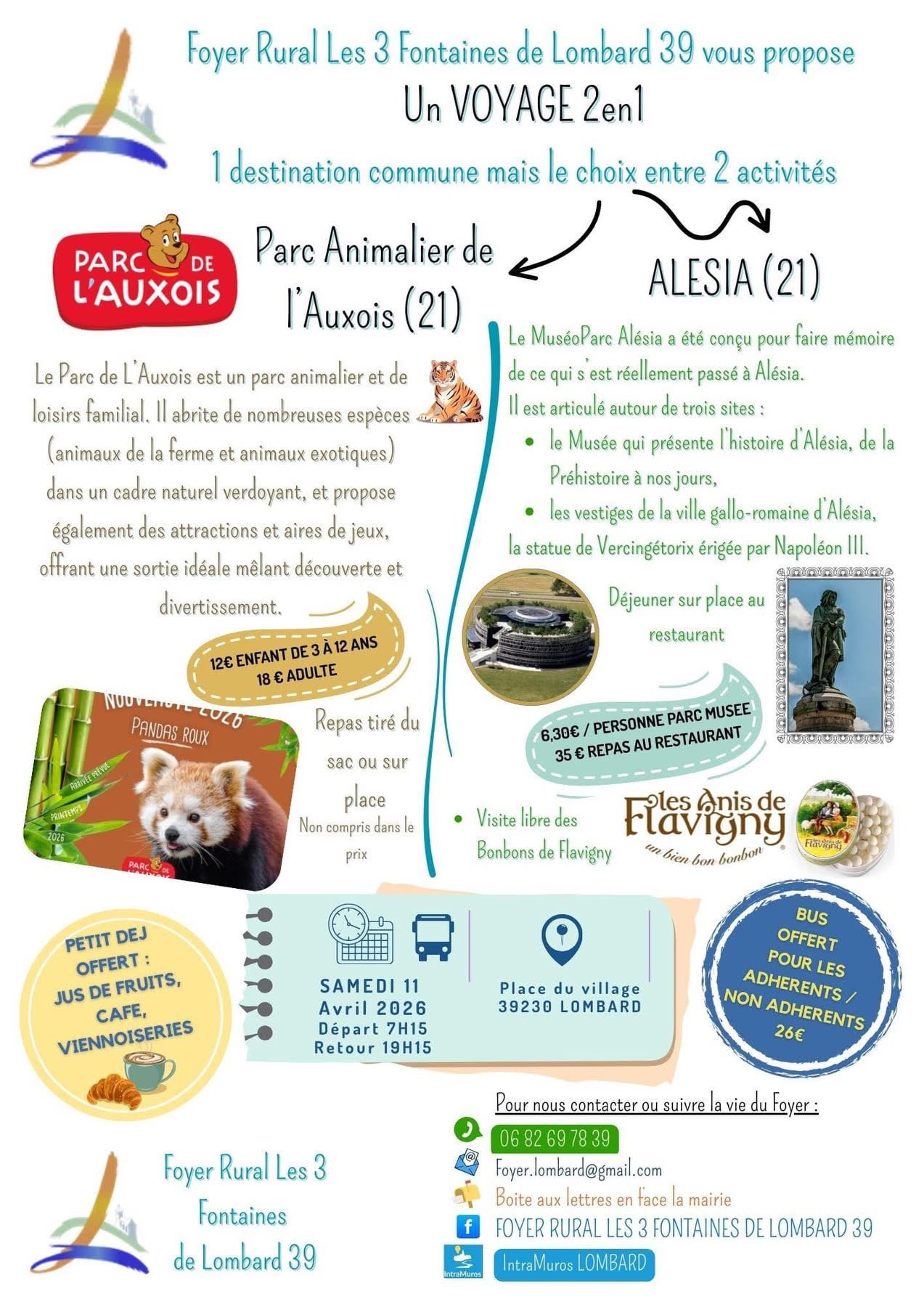 Le Foyer Rural Les 3 Fontaines de Lombard vous propose une journée conviviale le samedi 11 avril 2026 🚍