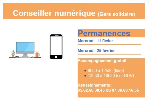 Médiathèque : permanences du conseiller numérique (gers solidaire) pour le mois de février