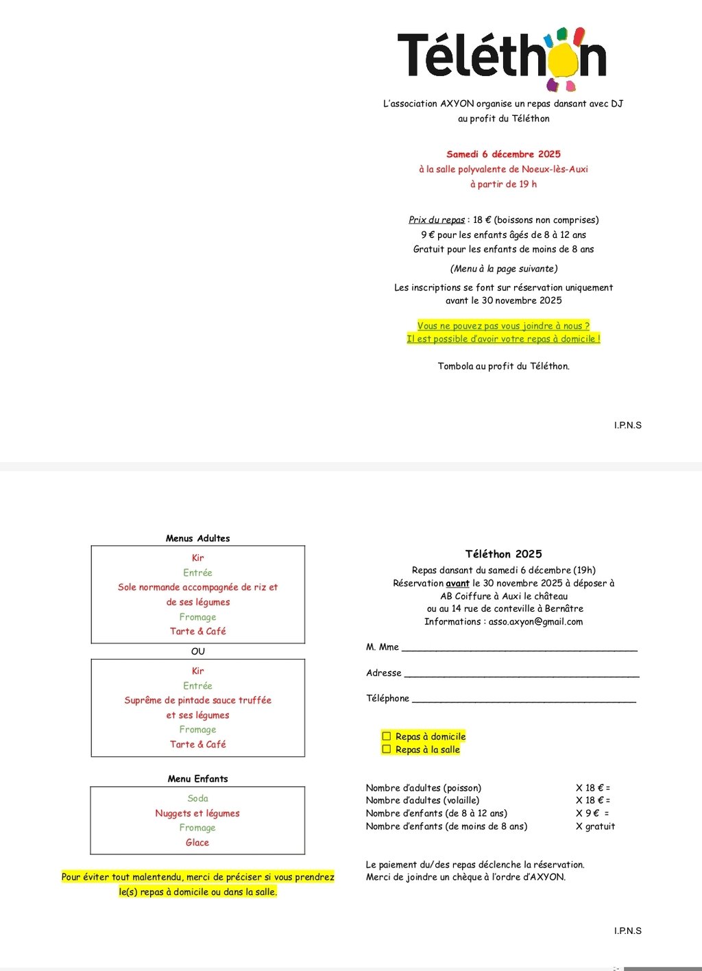 Pensez à vous inscrire pour le repas à Noeux les Auxi.