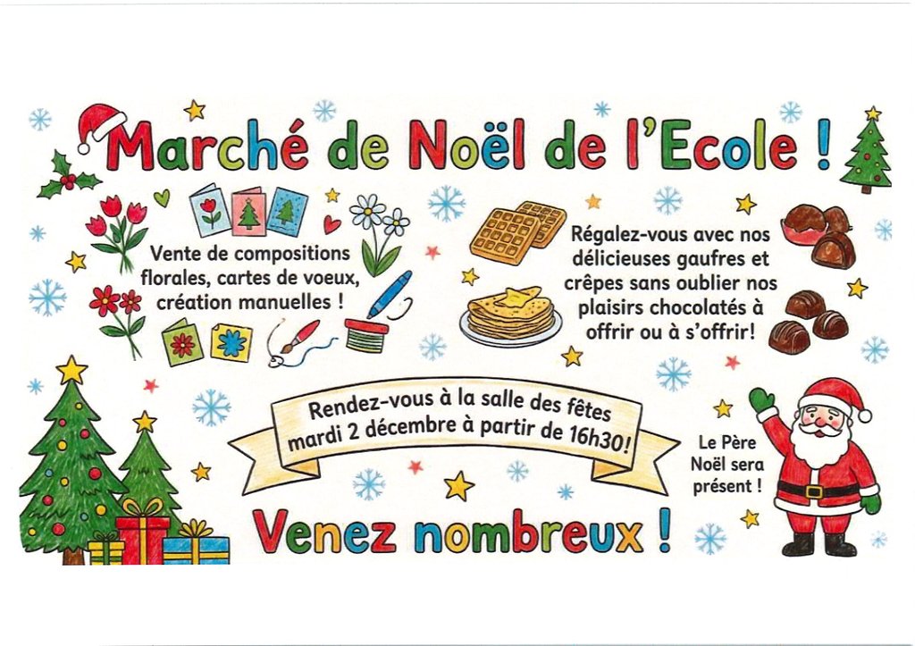Venez nombreux au Marché de Noël de l'école !