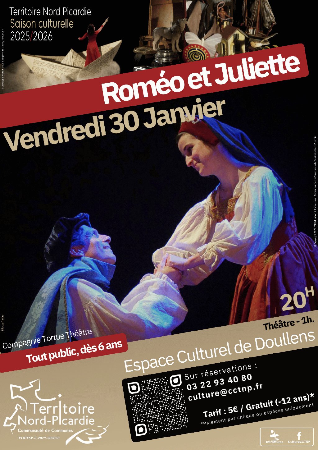 Le vendredi 30 janvier 2026 à 20h, à l'Espace Culturel de Doullens, venez découvrir ou redécouvrir l'histoire de Roméo et Juliette.