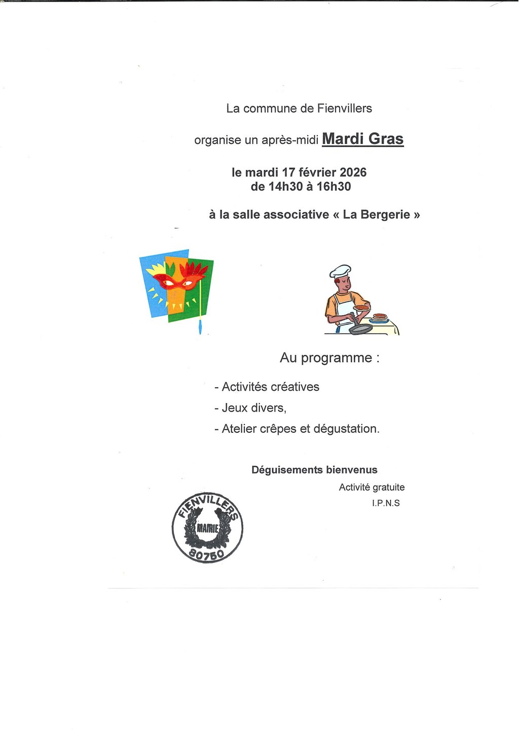 La Commune de Fienvillers organise un après-midi MARDI GRAS