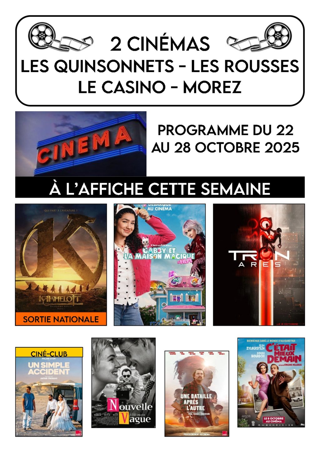 PROGRAMME CINÉMA MOREZ/LES ROUSSES DU 22 AU 28 OCTOBRE2025