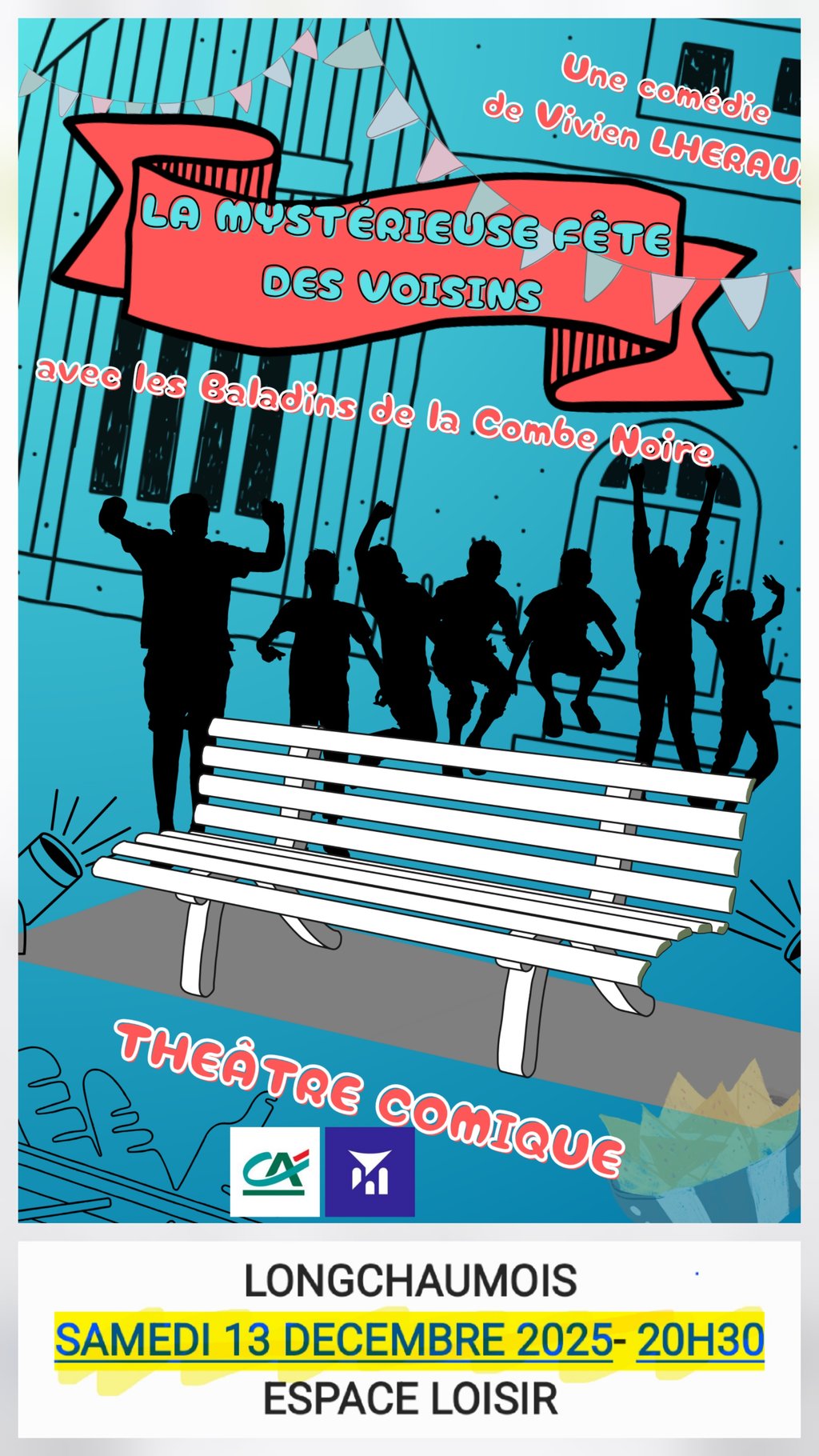 N'oubliez pas de réserver le samedi 13 décembre pour une soirée théâtre avec les baladins de la Combe Noire en représentation à Longchaumois.