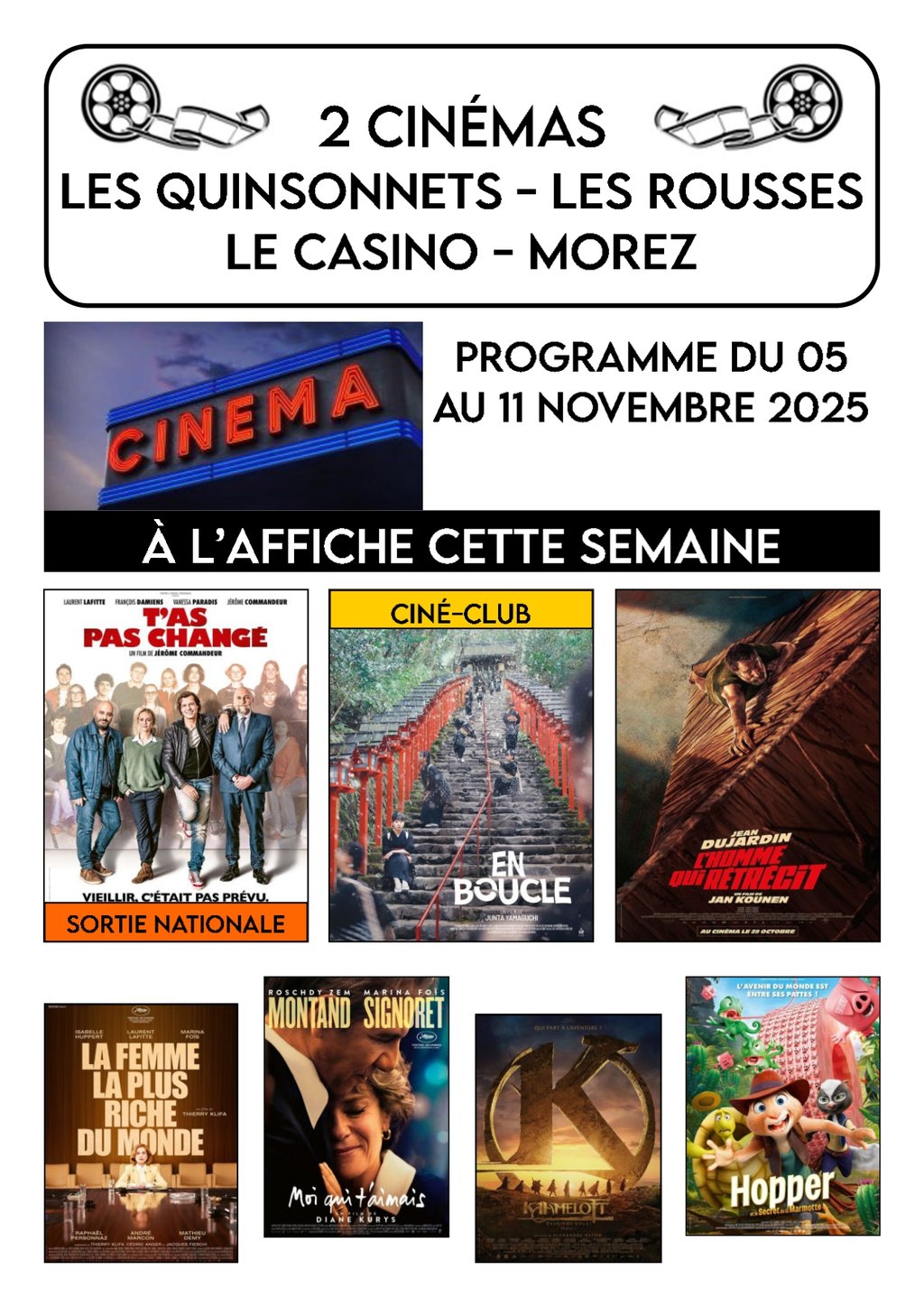 PROGRAMME CINÉMA MOREZ/LES ROUSSES DU 5 AU 11 NOVEMBRE 2025