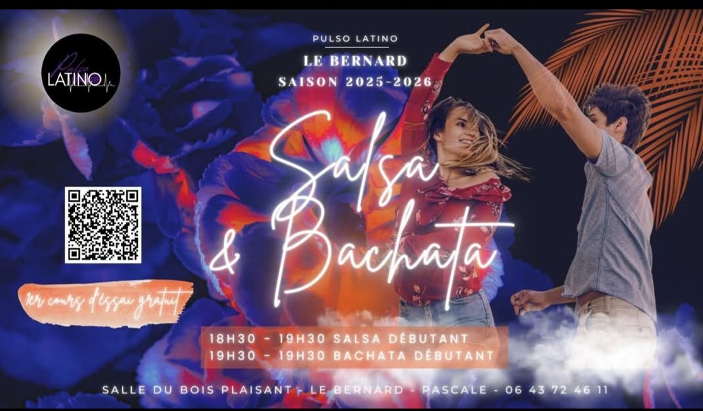 Cours de danses latines tous les lundis soirs, Ă la salle du Bois Plaisant au Bernard : salsa dĂ©butant de 18h30/19h30 et bachata dĂ©butant de 19h30/20h30Â