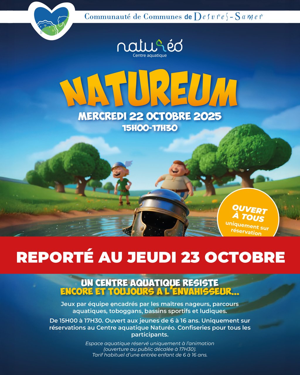 Réservation obligatoire auprès du Centre aquatique Naturéo