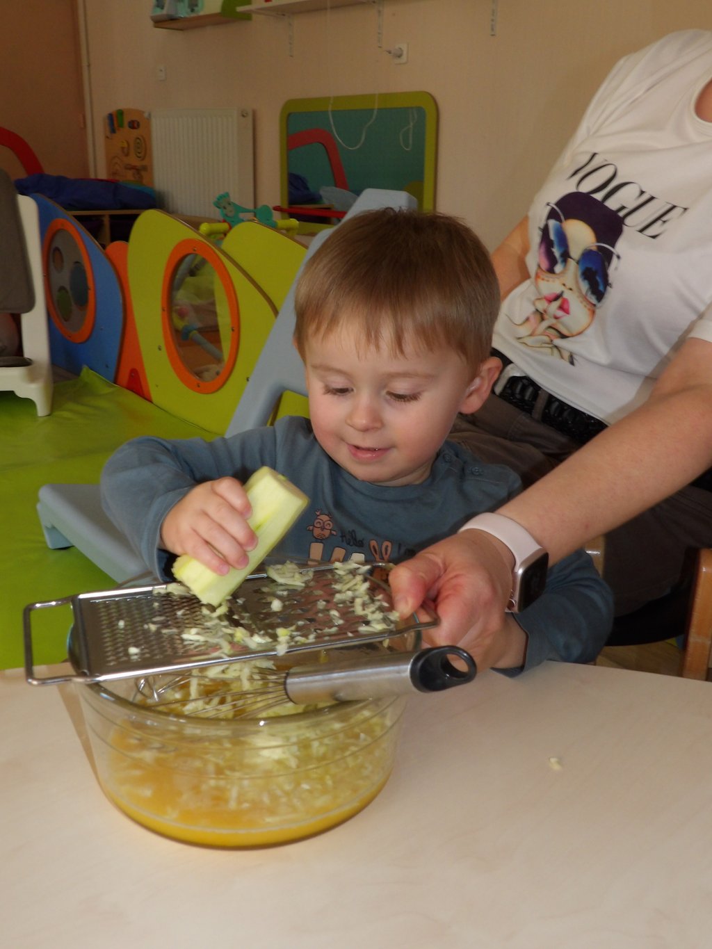 - Jeudi : réalisation d’un gâteau à la courgette et au chocolat (un vrai succès !)