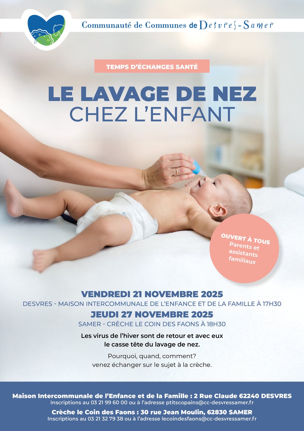 Parce qu’avec l’arrivée de l’hiver, les petits nez bouchés deviennent vite un casse-tête… nous vous proposons un temps d’échanges santé pour mieux comprendre quand, pourquoi et comment réaliser un lavage de nez chez les tout-petits.