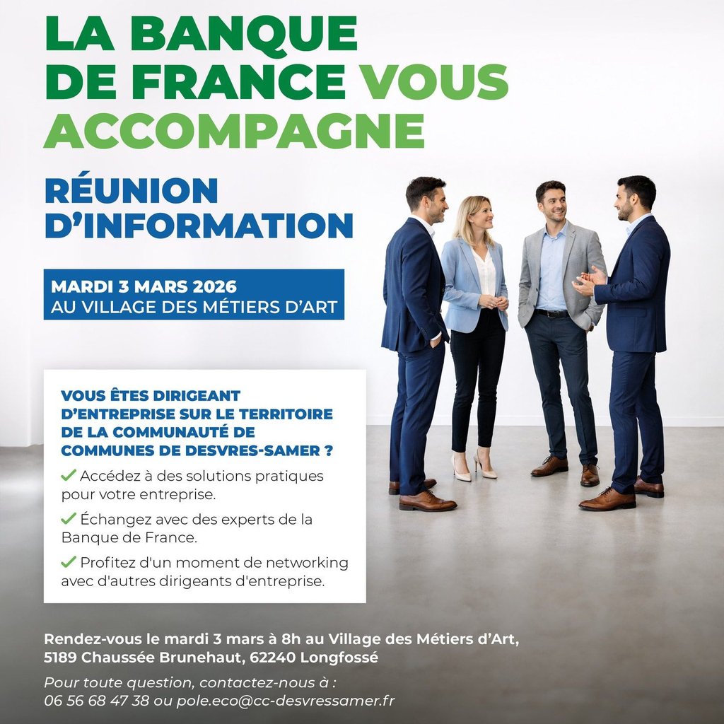 La Banque de France vient à votre rencontre pour une réunion d’information dédiée aux entreprises du territoire de la Communauté de Communes de Desvres-Samer.