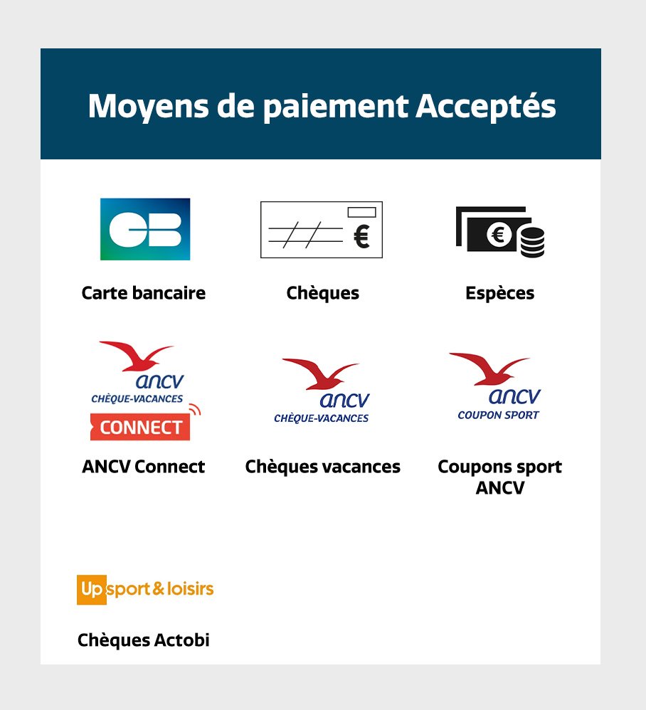 Afin de faciliter votre venue au centre aquatique Naturéo, plusieurs moyens de paiement sont acceptés à l’accueil pour le règlement des entrées, abonnements et activités.