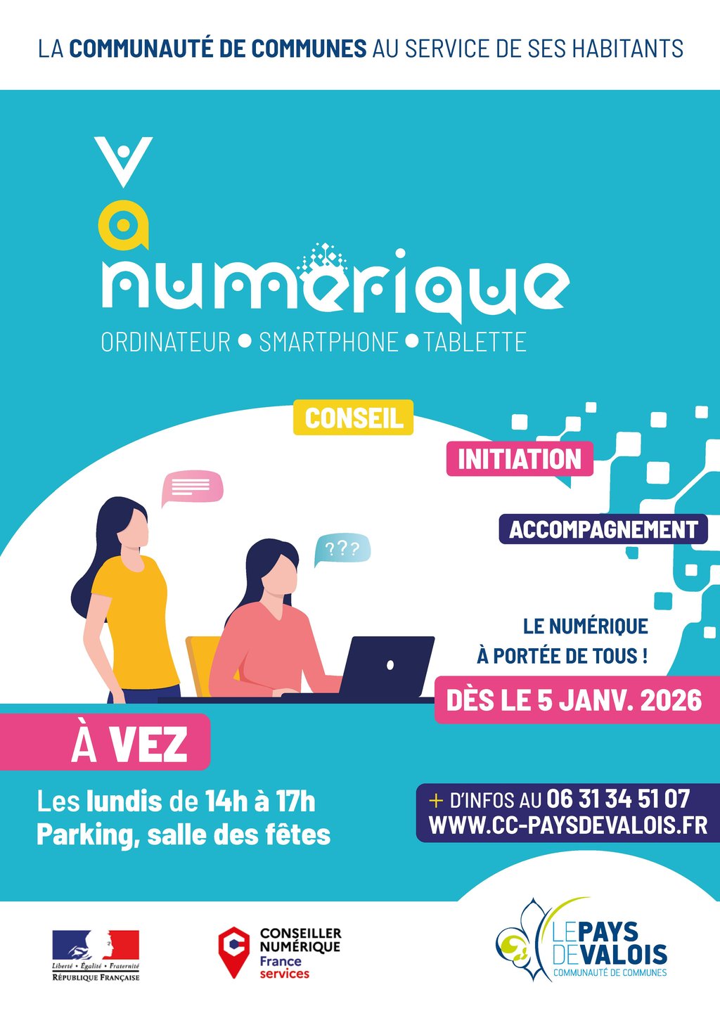 📍 Chaque semaine, le van numérique sera à Vez sur le parking de la salle des fêtes chaque lundi de 14h à 17h.