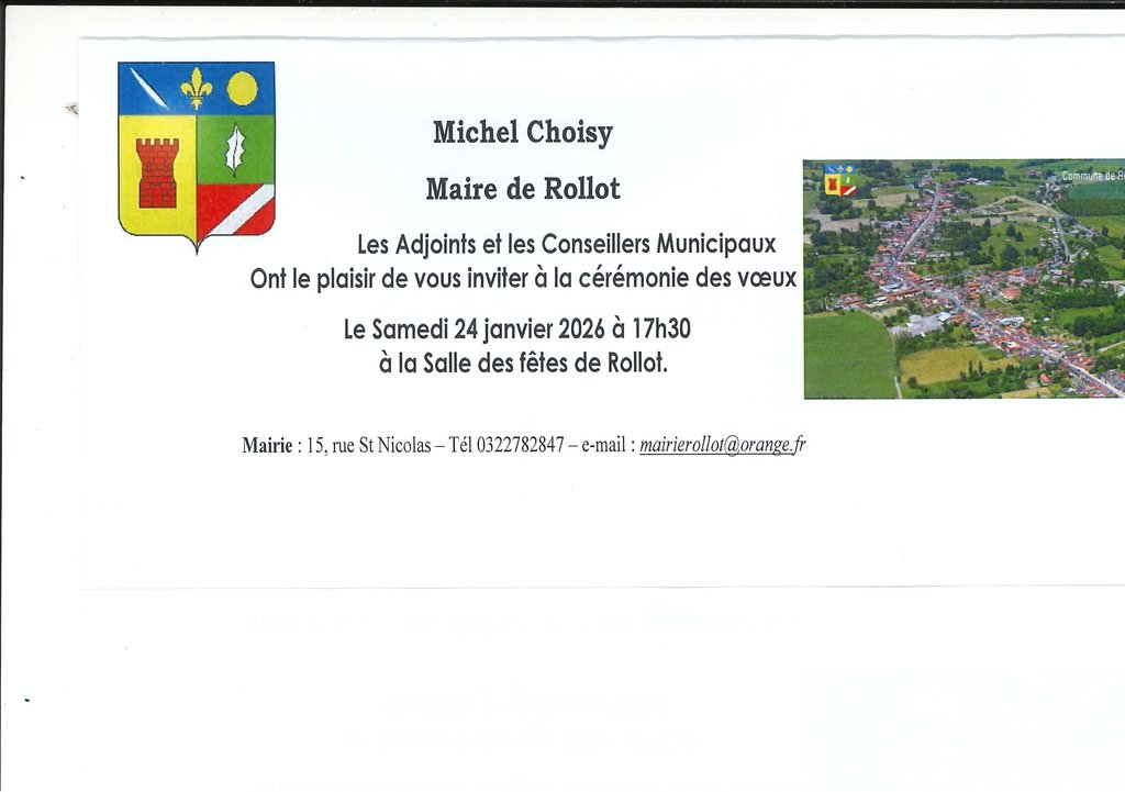 voeux de monsieur le Maire 17h30 à la salle des fêtes de Rollot