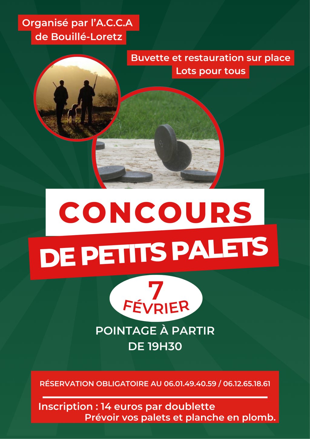 Réservation obligatoire au 0601494059 / 0612651861