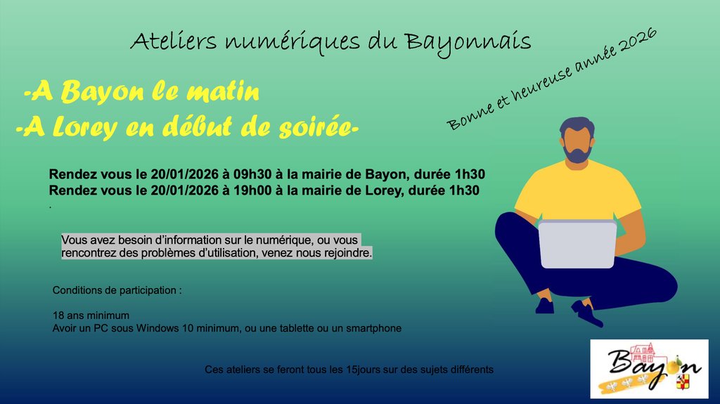 Ci-joint, vous trouverez une communication concernant l'atelier numérique du mardi 6 janvier 2026 animé par Didier CASTEL.
