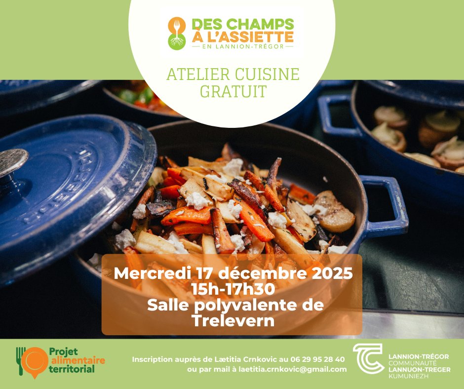 Le mercredi 17 décembre 2025 de 15h à 17h30, Lannion-Trégor Communauté vous propose un atelier de cuisine gourmande et durable, intitulé " Cuisine des fêtes".