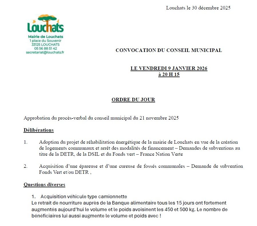 đ Prochain Conseil Municipal le vendredi 9 janvier 2026 Ă 20H15