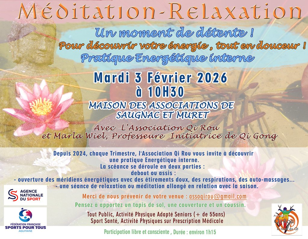 Méditation-Relaxation de l'Hiver avec Qi Rou, Mardi 3 Fevrier, 10H30 Saugnac et Muret