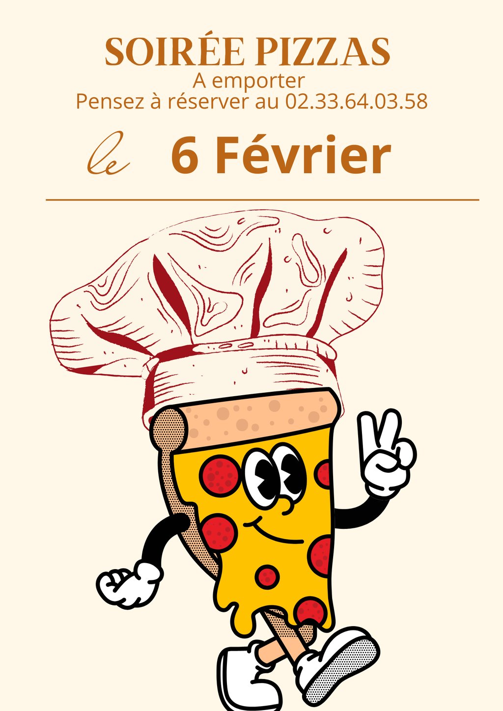 Vous trouverez la carte des pizzas proposées ci-jointe.