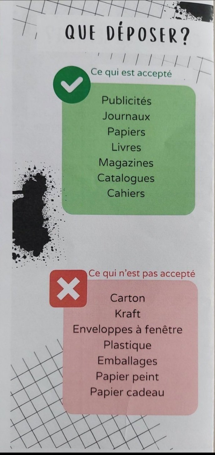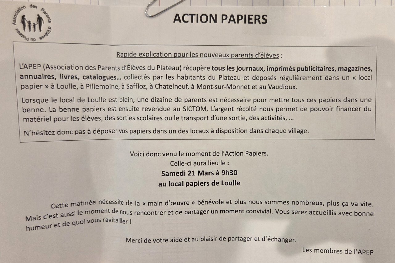 Notre prochaine action papiers aura lieu le samedi 21 mars 2026 à 9h30 au local papiers de Loulle.