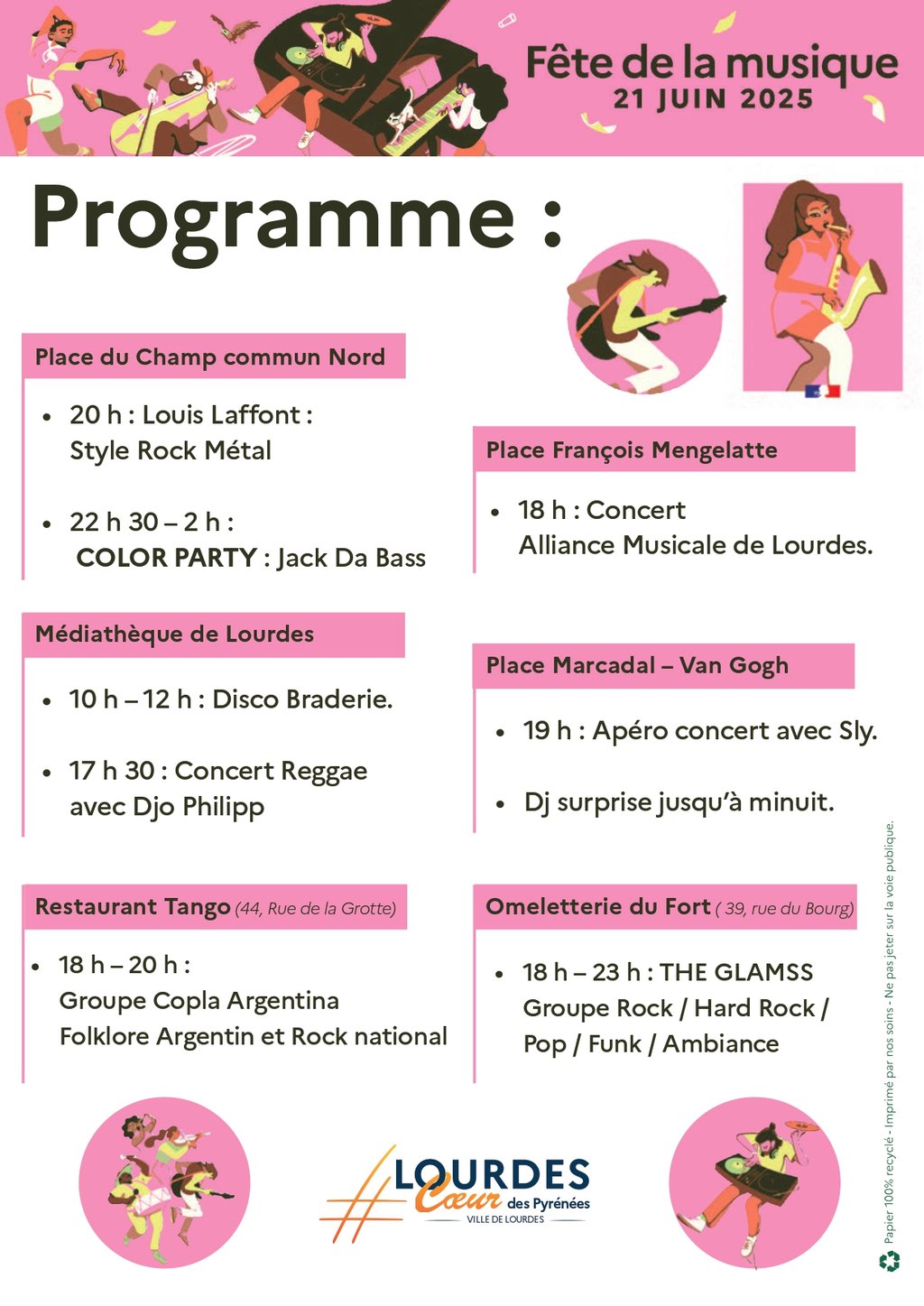 Samedi 21 juin, la Fête de la musique va venir mettre l’ambiance dans les rues de Lourdes. Lancée en 1982 par le ministère de la Culture, la Fête de la musique est aujourd’hui ancrée sur les cinq continents. Voici le programme des animations qui commenceront dès 18 h.