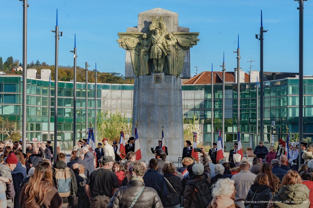 Devant le monument dédié aux soldats morts pour la France des suites de leurs blessures à Lourdes, la chorale pastorale de Lourdes a interprété un chant religieux suivi de la bénédiction par l’abbé Pierre Jamet, curé de Lourdes.