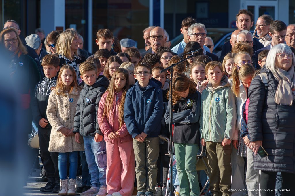 S’en est suivie la sonnerie Aux Morts, une minute de silence et enfin, l’interprétation de La Marseillaise par les Chanteurs Montagnards et les élèves des classes de CM1 et CM2 de Mesdames Castells, Gontie Llanes et Veper de l’école primaire du Lapacca, accompagnés par les musiciens de l’Alliance Musicale Lourdaise.