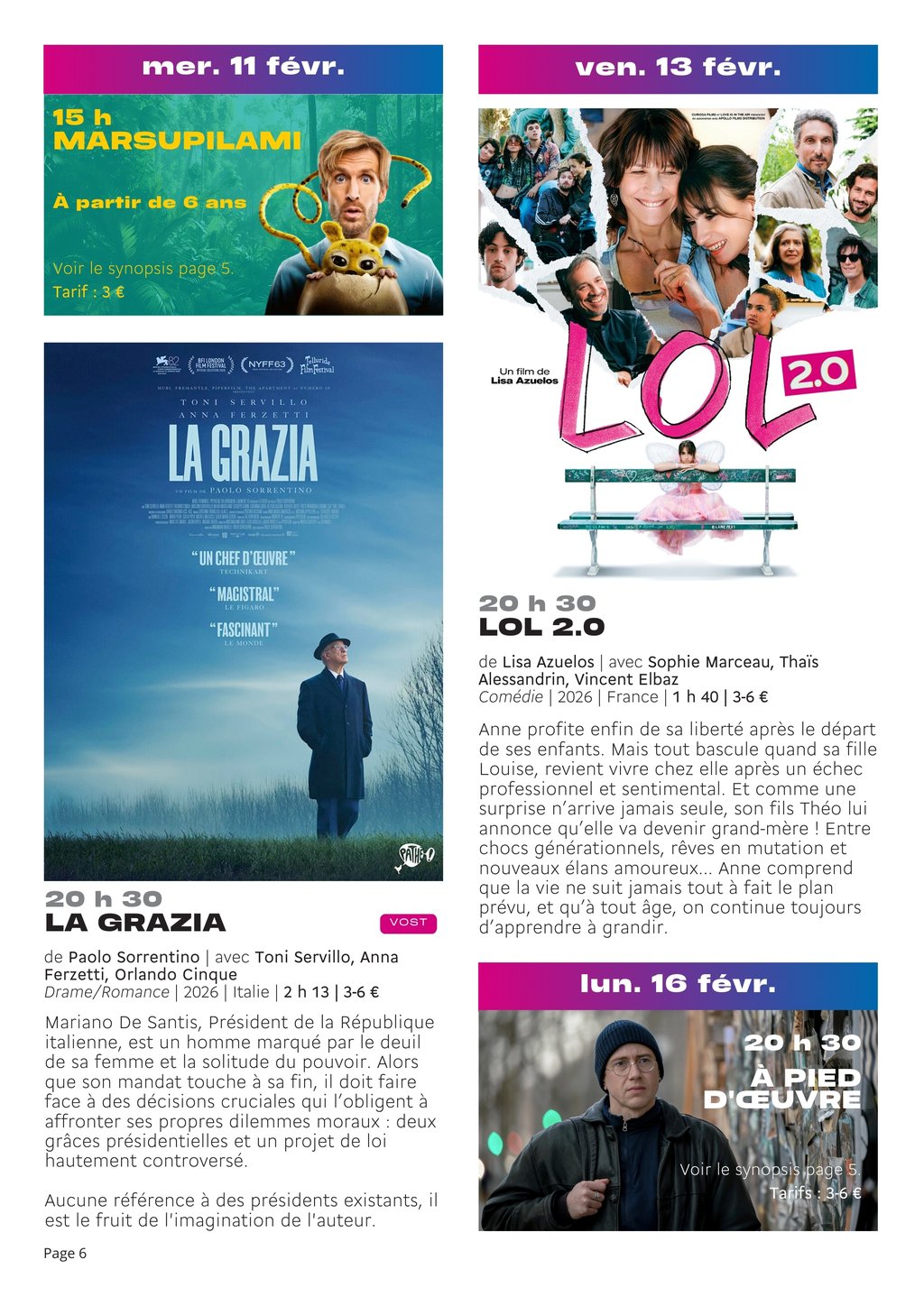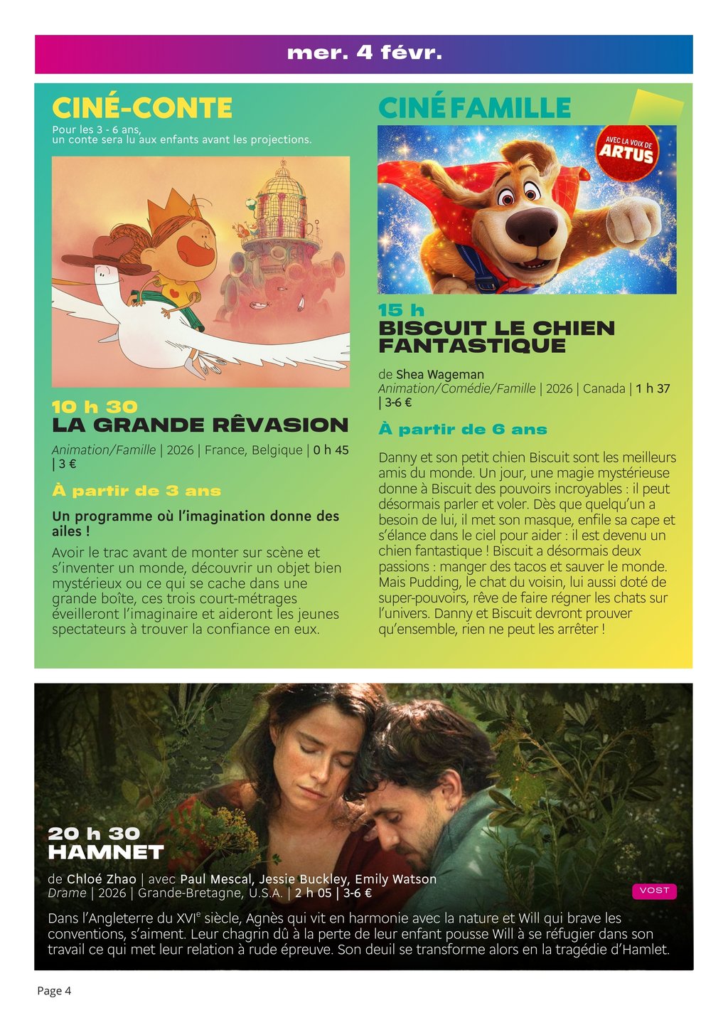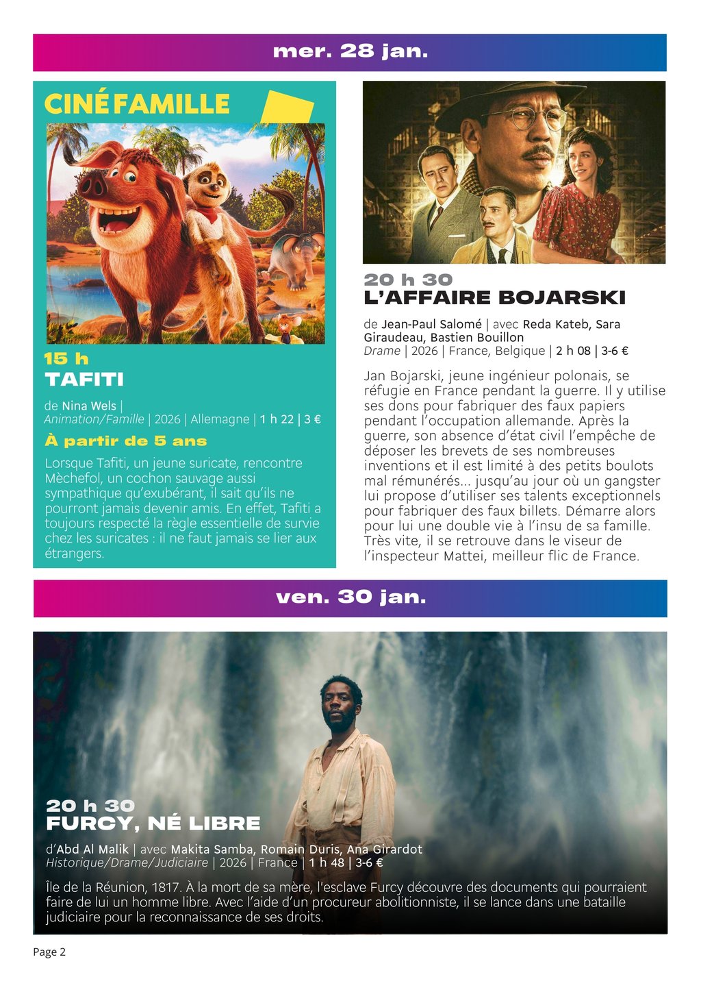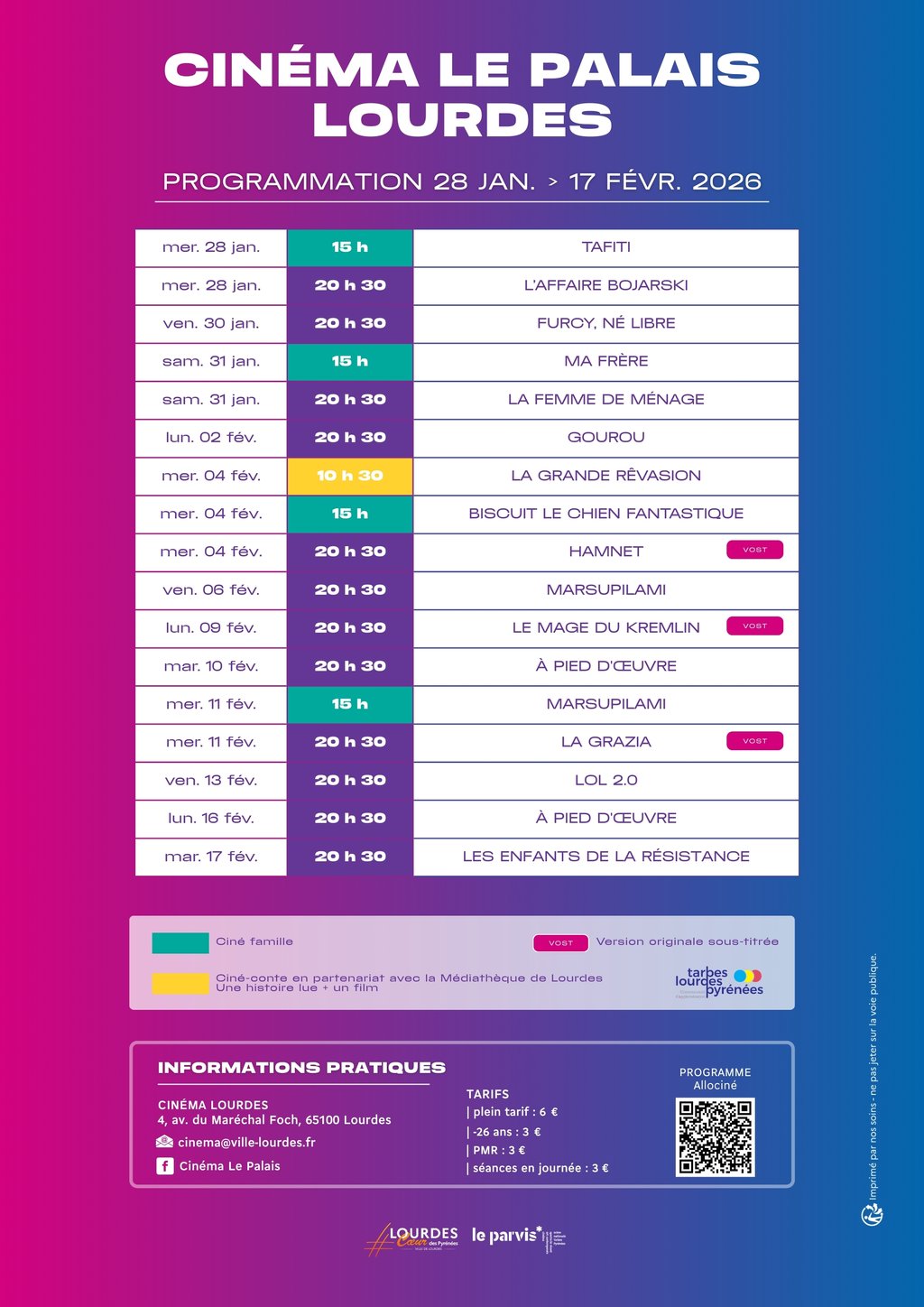 PROGRAMME CINÉMA LE PALAIS DU 28 JANVIER AU 17 FÉVRIER 2026