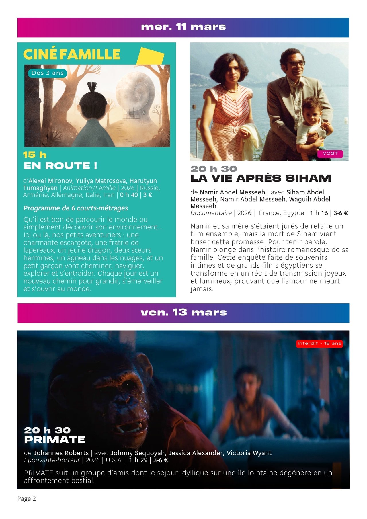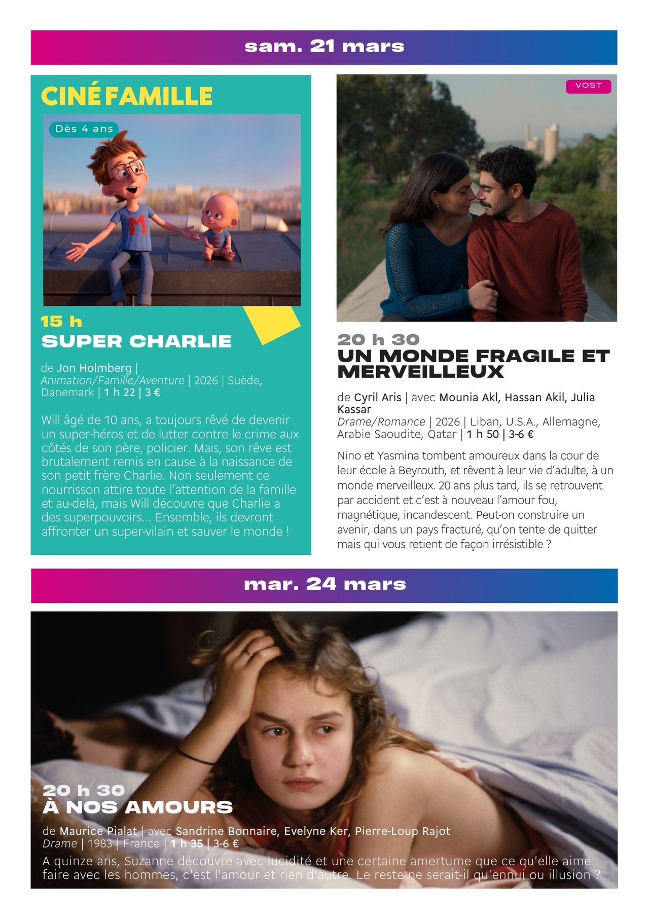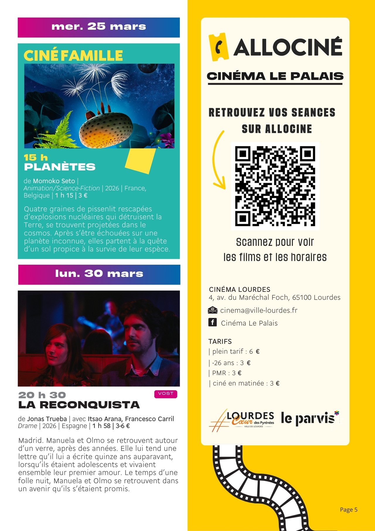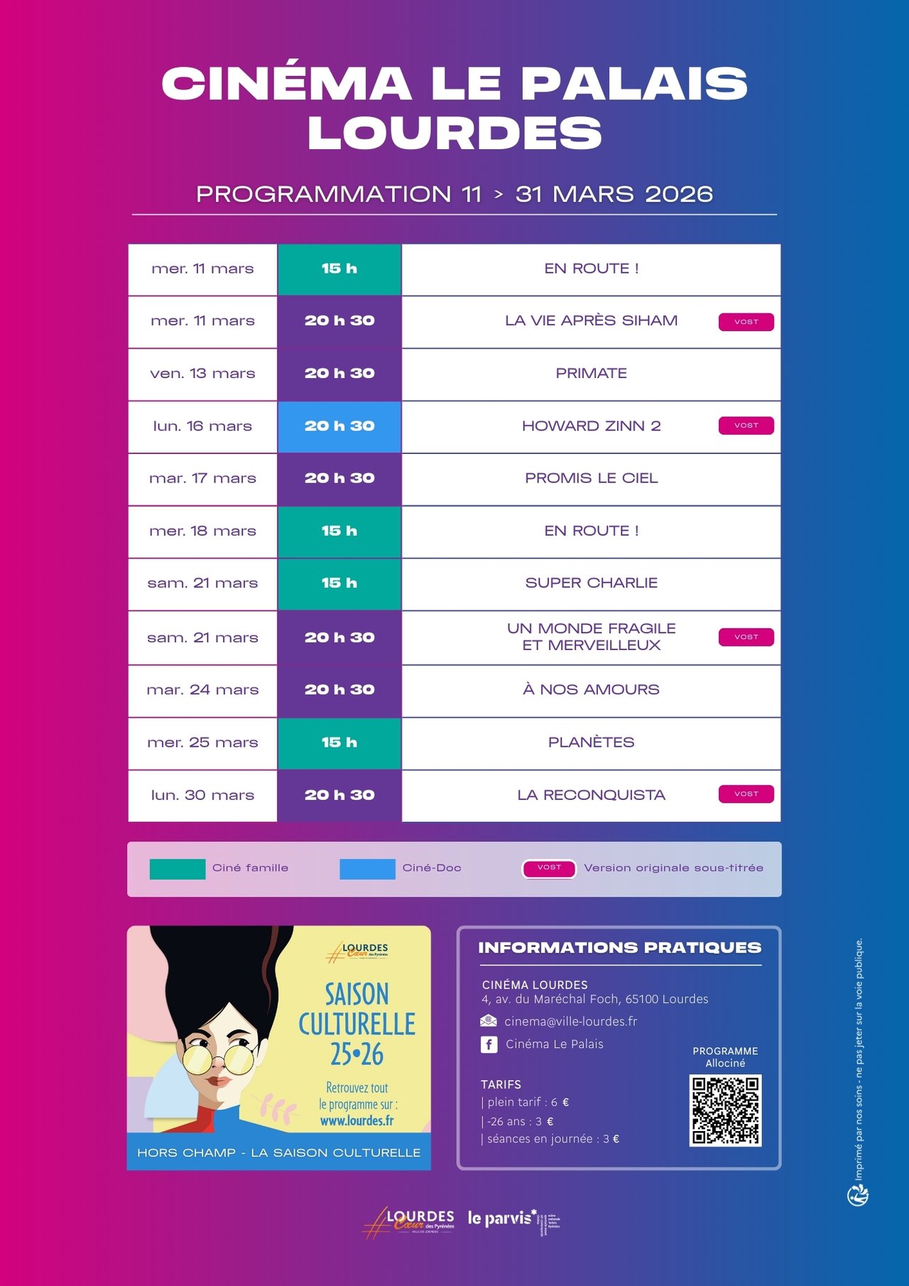 PROGRAMME CINÉMA LE PALAIS – DU 11 AU 31 MARS 2026