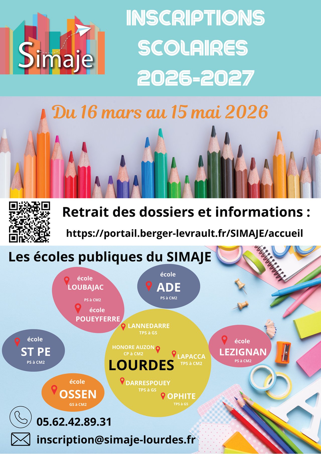 Le Syndicat Intercommunal Multi-Accueils Jeunesse Écoles du Pays de Lourdes (SIMAJE) ouvre les inscriptions scolaires pour l’année 2026-2027, du 16 mars au 15 mai 2026.