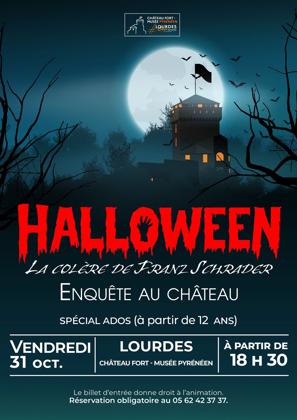 Le Château fort - Musée pyrénéen organise une enquête mystérieuse spécialement conçue pour les adolescents le vendredi 31 octobre à partir de 18 h 30. Les participants auront une heure pour retrouver l'objet convoité par le fantôme de Franz Schrader avant que sa colère ne s'abatte sur eux.