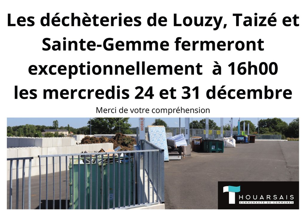 Les déchèteries de Louzy, Taizé et Sainte-Gemme fermeront exceptionnellement à 16h00