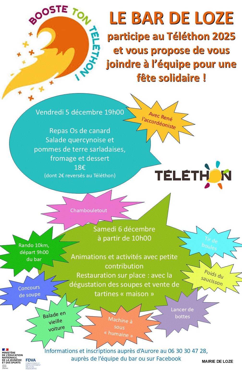 concours de soupe, tir de boules, balade en voiture ancienne, poids du saucisson, casino Cabirol, rando ( 10km, départ 9H du bar), lancer de bottes, chamboule-tout...