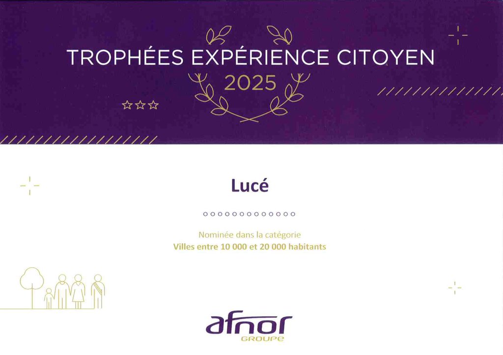 La ville de Lucé a reçu le "Trophée AFNOR 2025 – Expérience Citoyen" le 27 novembre à Nantes. Cette distinction nationale distingue les communes les plus exemplaires en matière de relation aux habitants : qualité de l’accueil, physique ou dématérialisé ; pertinence des réponses apportées ; respect des délais et performance globale des interactions.
