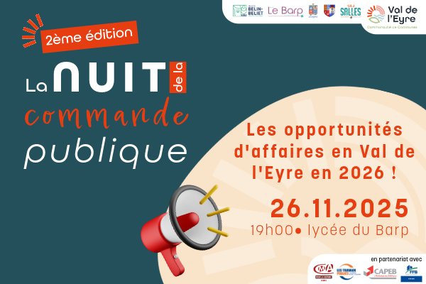 📢 LA CDC DU VAL DE L’EYRE INVITE LES ENTREPRISES À PARTICIPER À LA 2ᵉ ÉDITION DE “LA NUIT DE LA COMMANDE PUBLIQUE”