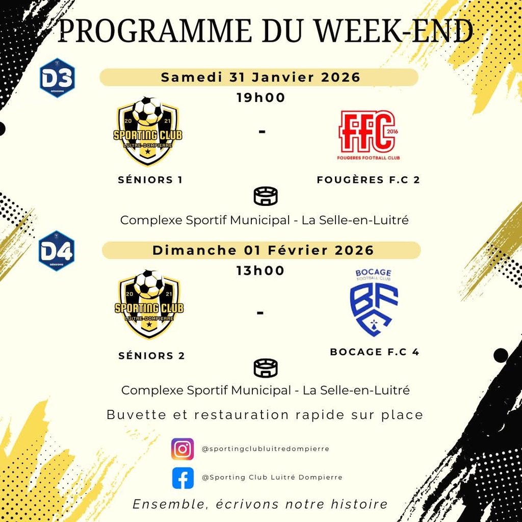 Seniors A joue à 19h sur le nouveau synthe à la Selle en luitre ce samedi .