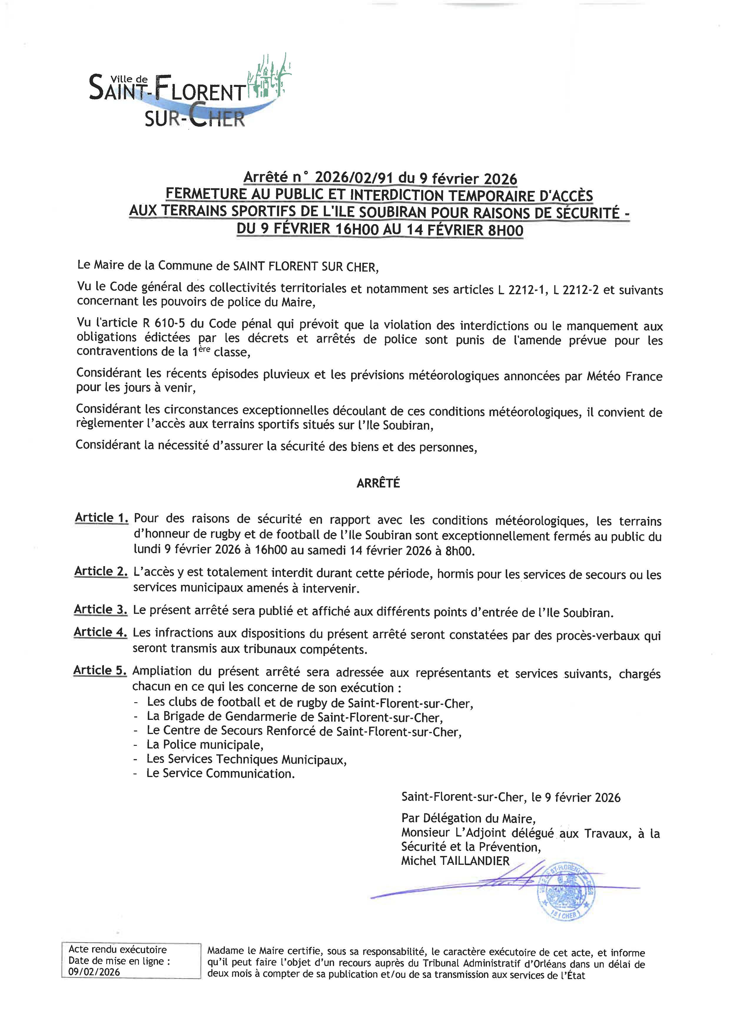 ⚠️ INFO IMPORTANTE – SAINT-FLORENT-SUR-CHER - FERMETURE DES STADES
