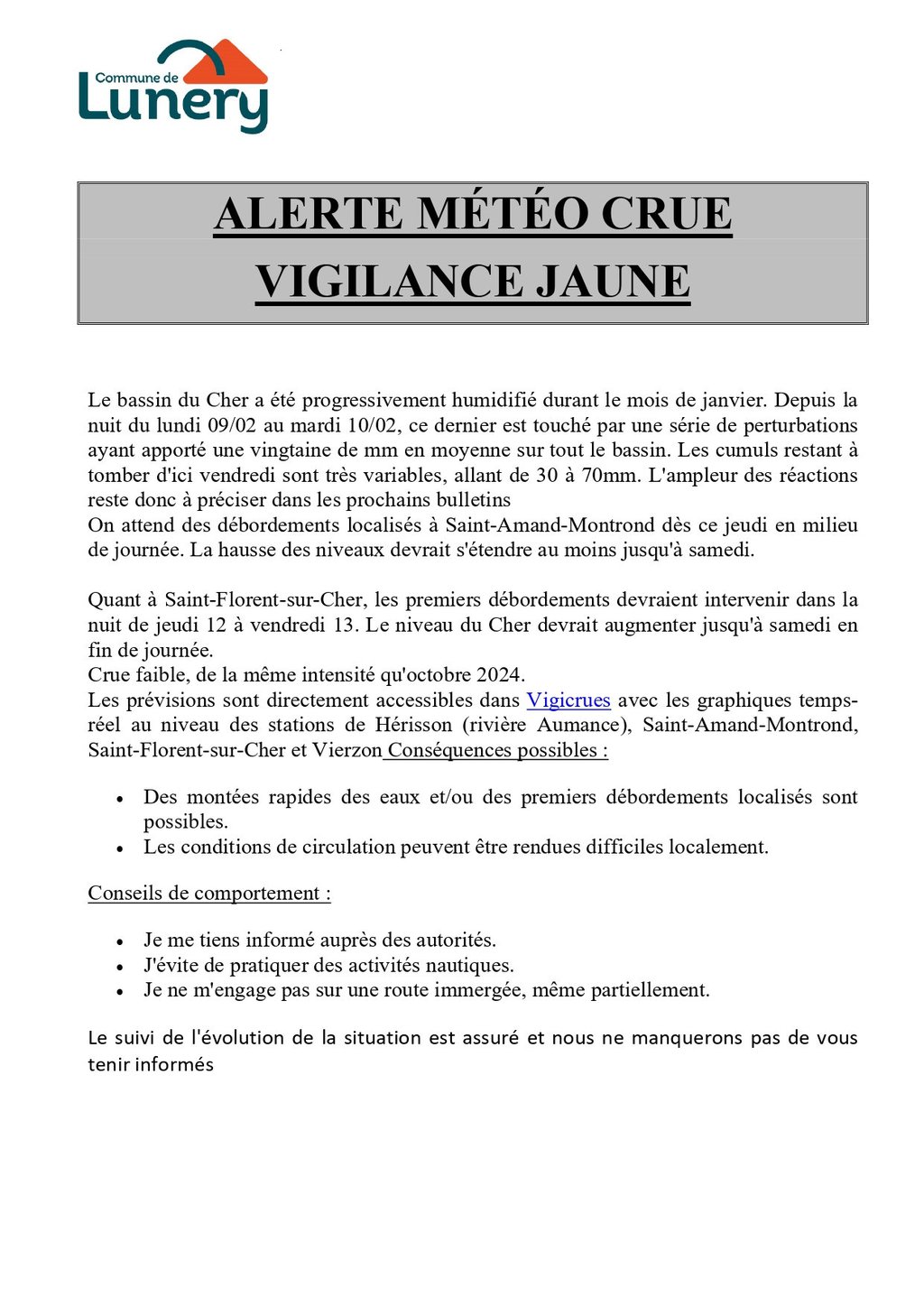 ALERTE MÉTÉO CRUE - VIGILANCE JAUNE