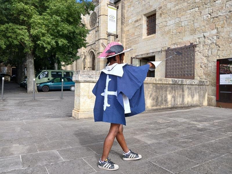 Pour une meilleure immersion dans l’univers des mousquetaires, nous vous invitons à fabriquer un costume de mousquetaire à la maison et à l’endosser lors de votre visite à Lupiac (conseillé mais non obligatoire).