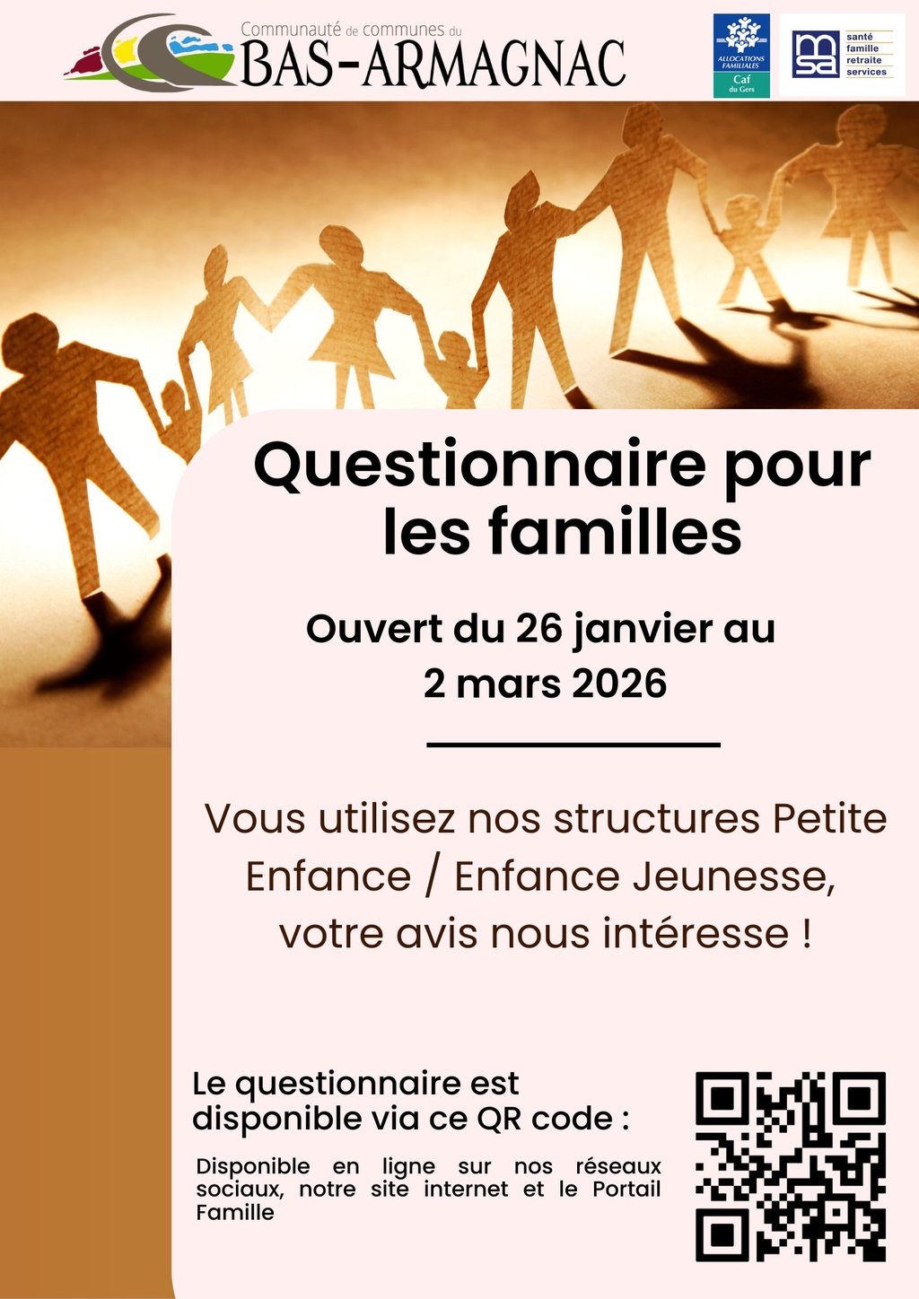 La Communauté de communes du Bas Armagnac réalise une enquête auprès des familles.