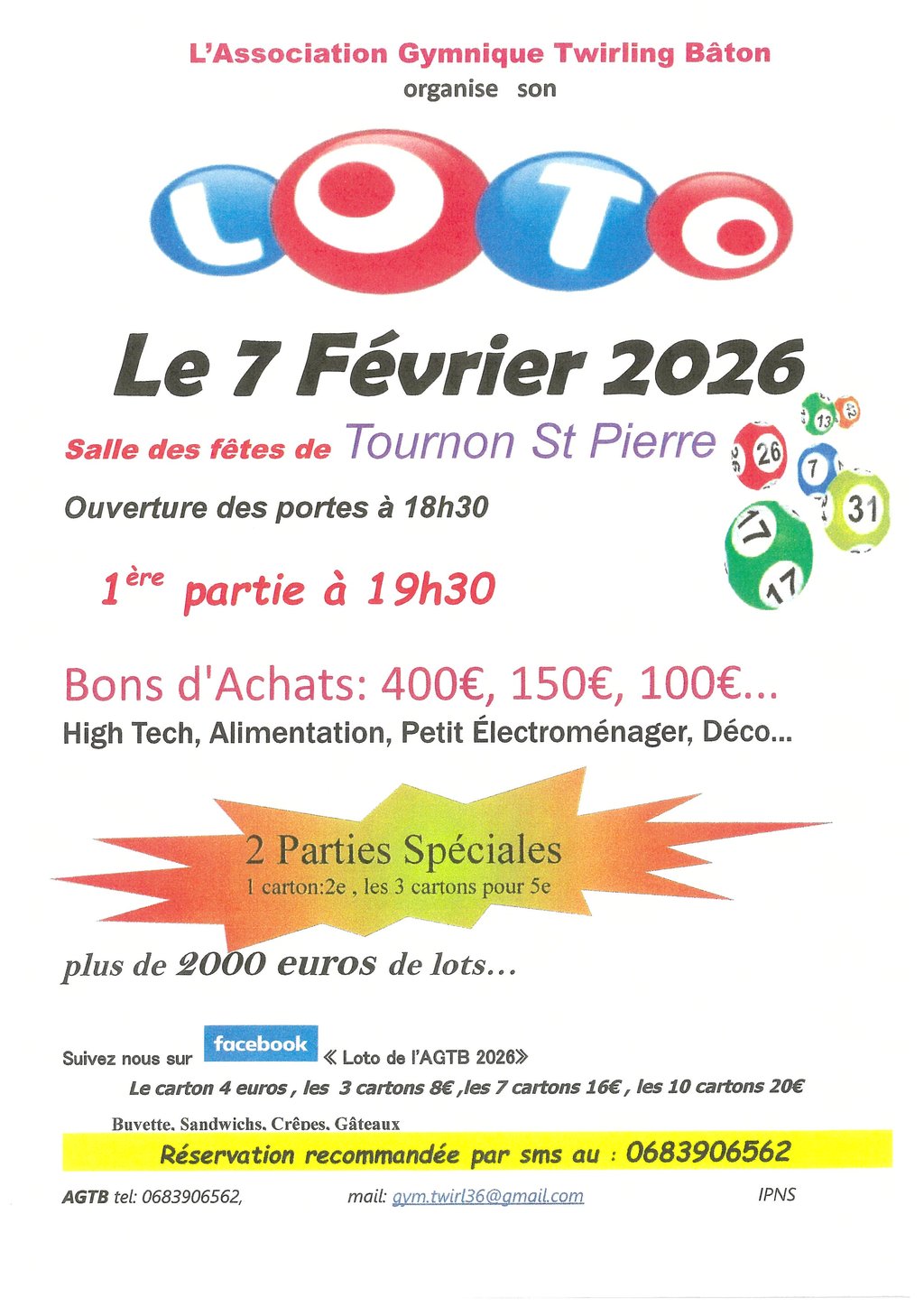 le 07 février 2026 à la salle des fêtes de Tournon Saint Pierre