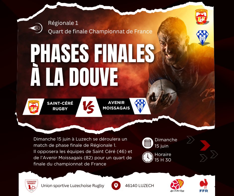 Dimanche 15 juin à 15h30 les équipes de Moissac et Saint Céré (qui étaient dans la poule de l’USL) joueront leur quart de finale du Championnat de France.