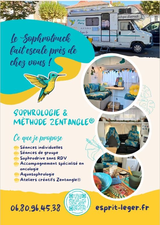 Mélanie, Sophrologue et Enseignante Zentangle®, vous invite à venir découvrir le Sophrotruck, le premier cabinet mobile de sophrologie du Lot, tous les jeudis à Luzech, au Faitoutnumérique, av. d'Uxellodunum.