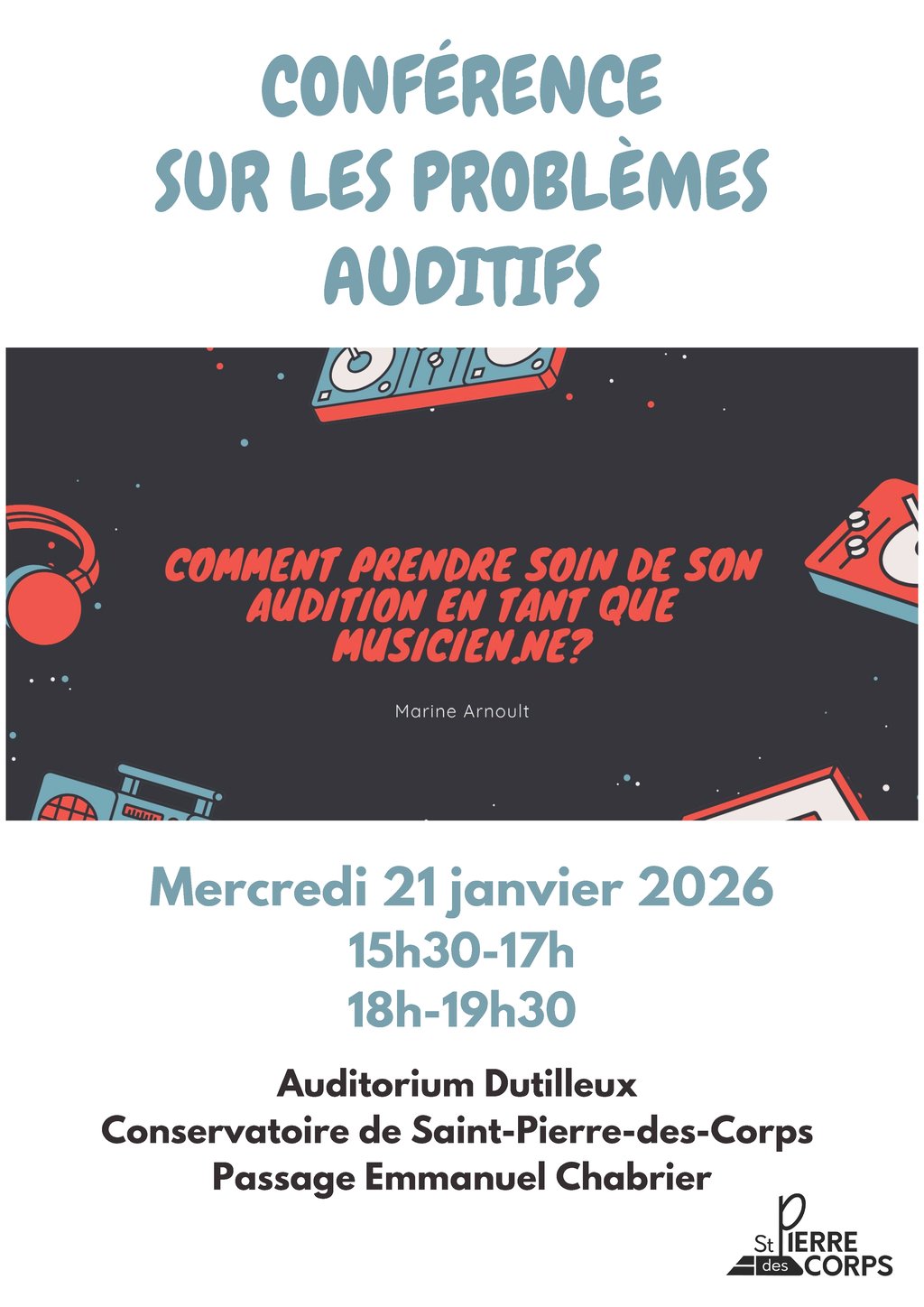 Le conservatoire vous propose une conférence sur les problèmes auditifs le mercredi 21 janvier à 15h30 et 18h.