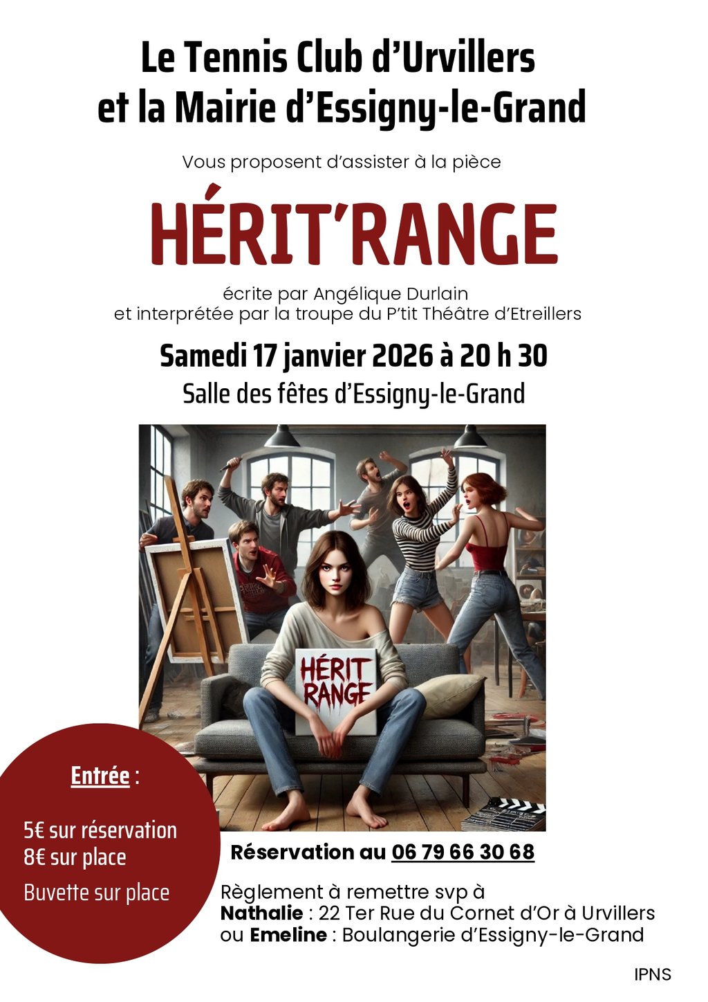 Le TENNIS CLUB D'URVILLERS vous propose d'assister à une pièce de Théatre le Samedi 17 Janvier 2026, avec ma Mairie d'ESSIGNY LE GRAND