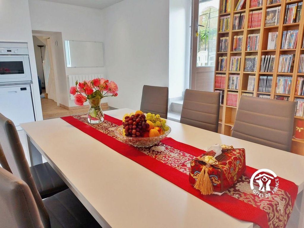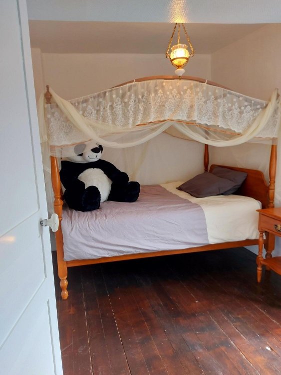 Les Bruyères vous offrent un cadre confortable avec de vastes pièces et une cour intérieure très abritée avec barbecue et mobilier de jardin. Au rez-de-chaussée vous entrez par le salon (28m²) avec son poêle, une grande TV avec TNT et deux canapés. La cuisine de 25m² permet de partager des repas conviviaux : grand réfrigérateur, lave-vaisselle, machine à laver le linge, four, micro-onde, 2 feux induction et 2 feux gaz. La salle de douche avec douche à l'italienne, lavabo, rangement et sèche-cheveux. Les WC sont indépendants. A l'étage, 3 chambres. La 1ere de 34 m² dispose d'un lit king size 180*200 d'une baignoire et des WC, paravent de discrétion, grand rangement. Une 2e chambre verte (18m²) avec un lit 140*190, commode et canapé clic-clac. La dernière (8m²) avec son lit baldaquin a un lit en 140*190.