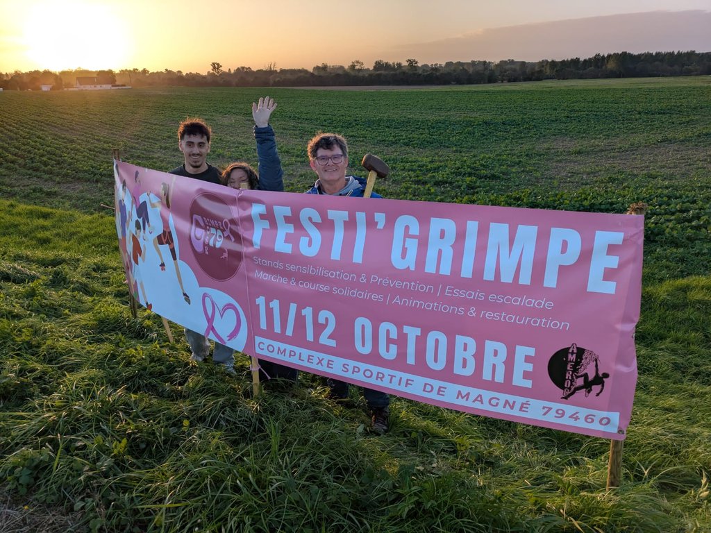 Pour rappel, de 5 à 105 ans, on vous attend le week-end prochain pour, selon votre envie et vos besoins, marcher, courir, grimper, venir prendre des infos sur le cancer du sein et des soutiens qui existent, matériels et humains, pour vous ou vos proches. Nous vous attendons aussi pour croquer un morceau entre amis ou en famille avec les food truck présents, boire un bon thé chaud ou autre à la buvette, tenter votre chance à la pêche à la ligne ou à la tombola, vous faire faire une petite coupe d'automne, découvrir le spectacle de la Cie Walden prod dimanche à 16h ou vous faire du bien à l'école du dos le samedi après-midi ! Tout ceci dans un esprit solidaire au profit de l'association Grimperose79 et des femmes qui vont pouvoir bénéficier d'une saison d'escalade adaptée, entièrement prise en charge par Grimpe Rose 79 et encadrée par Ameroc !