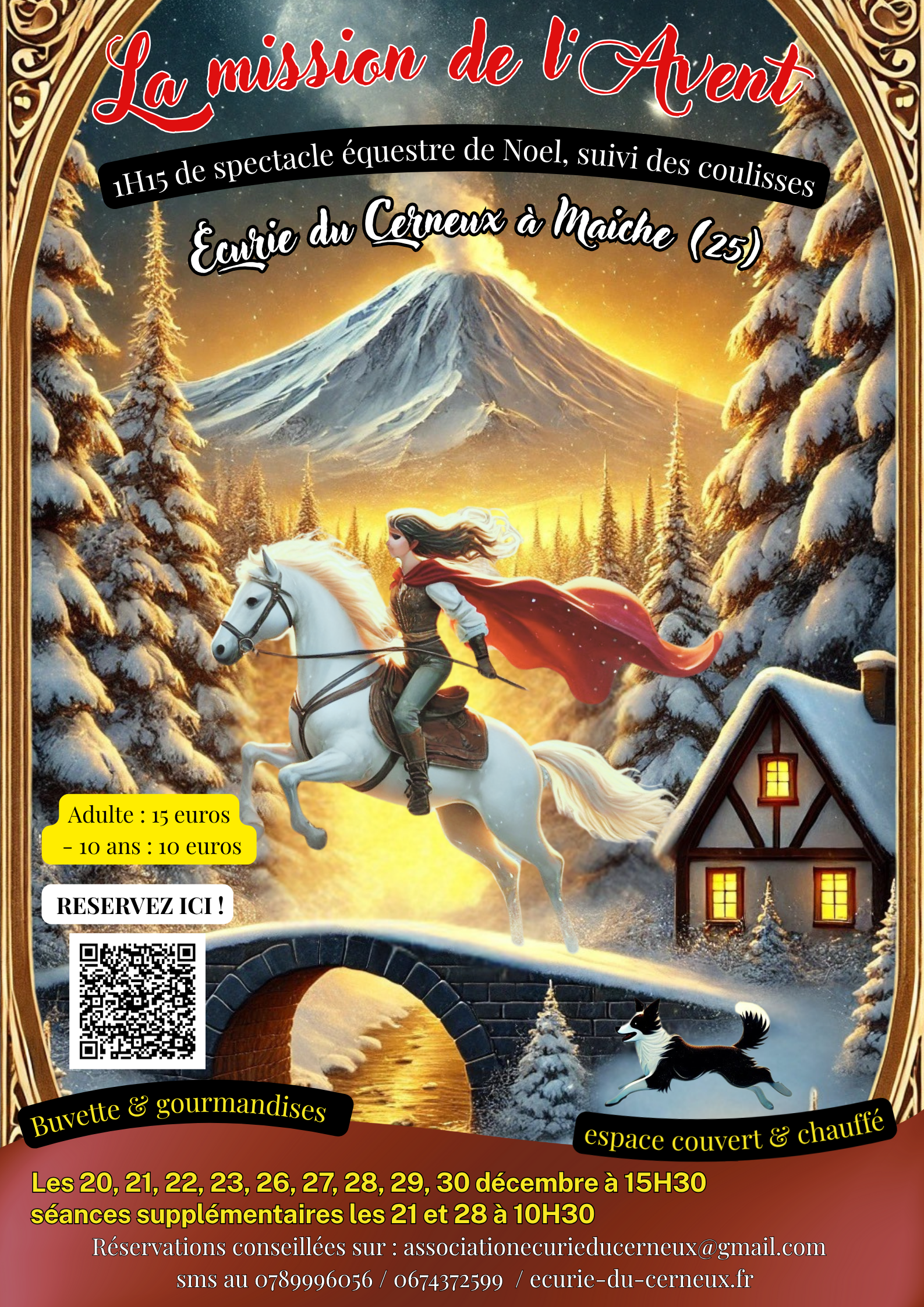 L'écurie du Cerneux à Maiche est très heureux de vous annoncer les nouvelles dates de leur spectacle de Noël : La Mission de l'Avent !