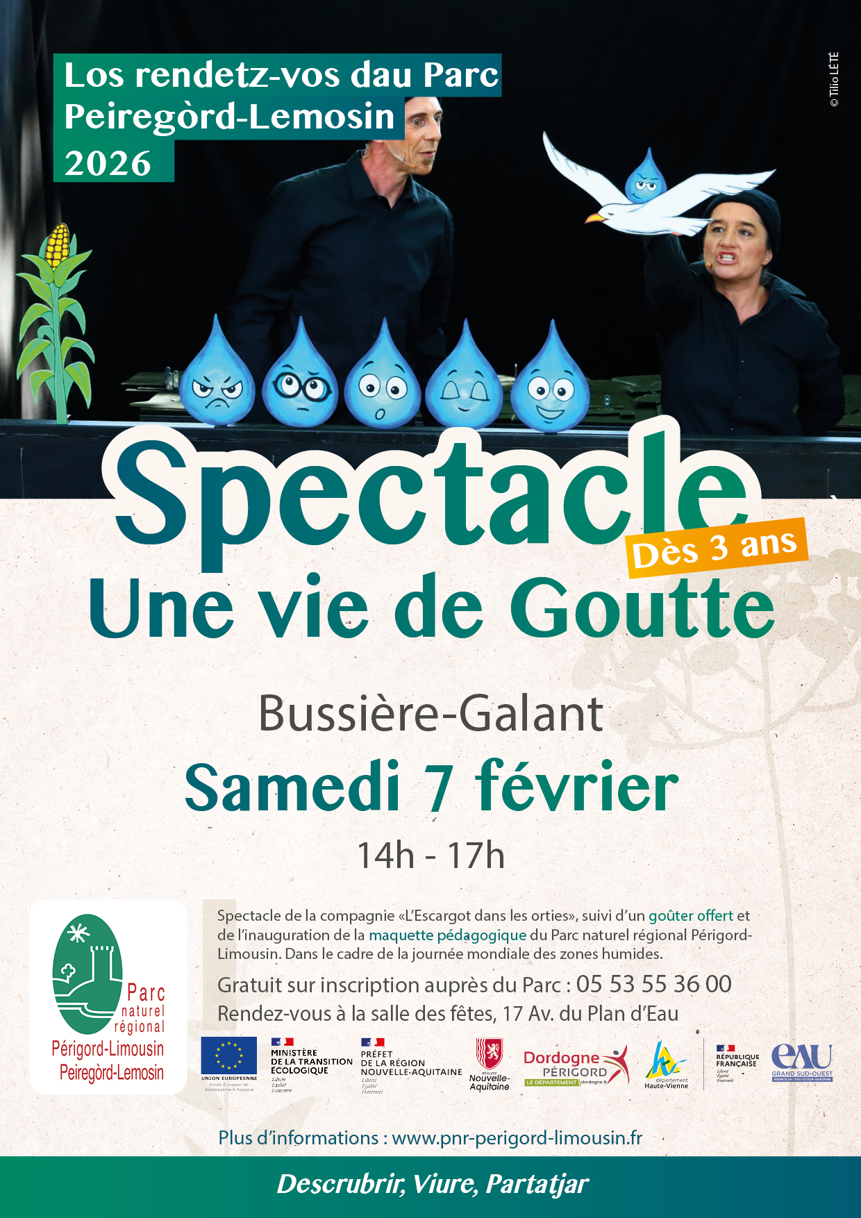 A l’occasion de l’inauguration de la maquette pédagogique "Bassin versant" du PNR, nous vous offrons un spectacle haut en couleur qui parle du cycle de l’eau comme vous ne l’avez jamais vu !