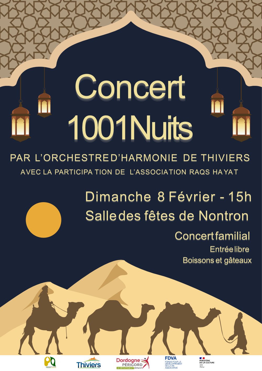 Concert 1001 Nuits par l'orchestre d'harmonie de Thiviers, le dimanche 8 février 2026 à 15h, salle des fêtes de Nontron.